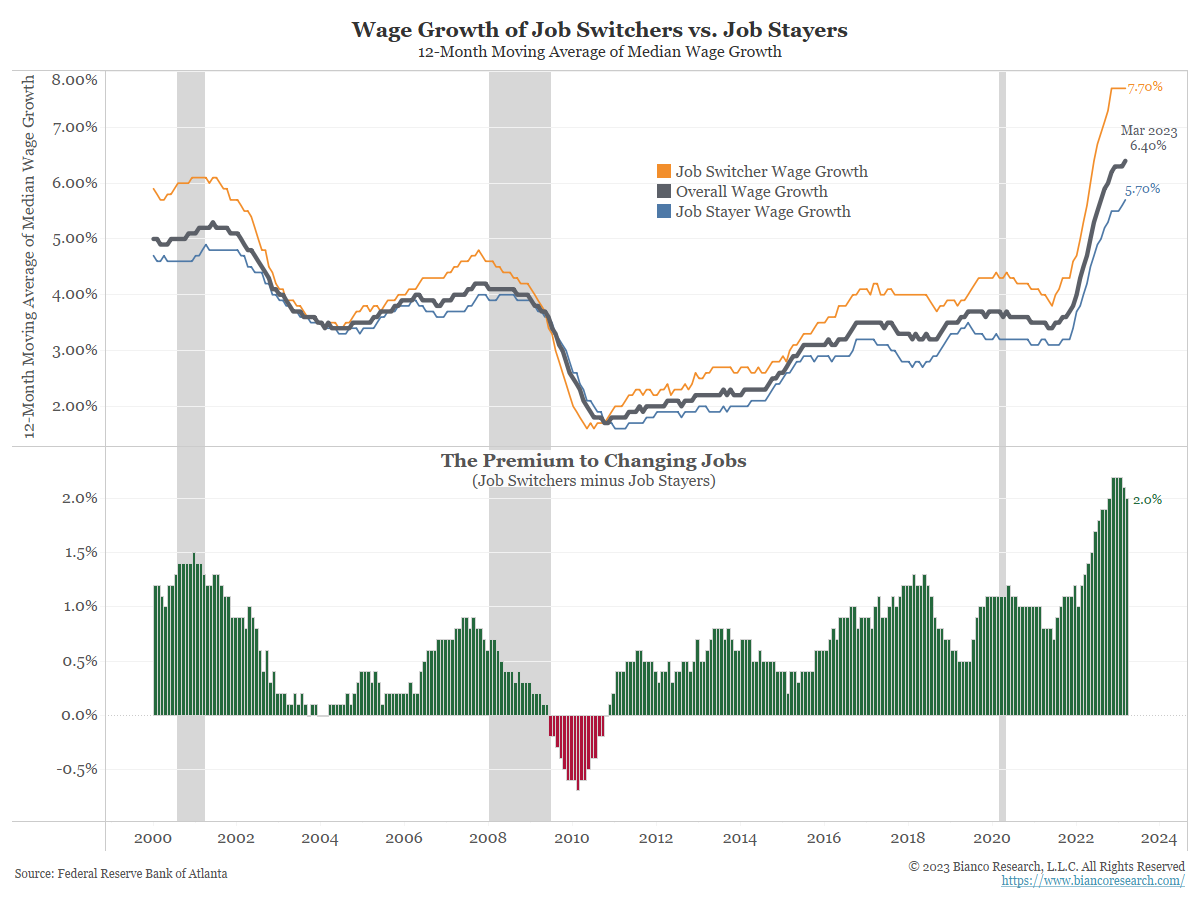 The NFP jobs number comes on Friday and is likely to continue to show a relatively tight jobs market and low unemployment number (jobs add of 182k and 3.6% unemployment). Elevated jobs prints will continue to reiterate the need for “higher for longer” as wage inflation is still worrisome (currently at 6.4% as measured by the ATL Fed).