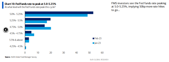 This goes contrary to the recent February BofA Global Fund Manager’s survey released yesterday morning, showing only 23% think the Fed will go above 5.00% to 5.25%. So, the market pricing detailed above has the terminal rate higher than 75% of the fund managers in this survey, covering 273 managers with over $750 billion of AUM and was conducted from February 2 to February 9.