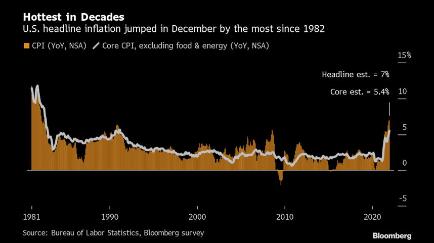 It’s been a big week for Chairman Powell as the Senate held his reconfirmation hearing on Tuesday and this morning (Wednesday) brought the release of the final inflation data for 2021. Headline CPI came in at 7%, a 39 year high. The back half of 2021 will be remembered for the re-emergence and surge higher in prices – across the board. We’ll see if this momentum continues in 2022.