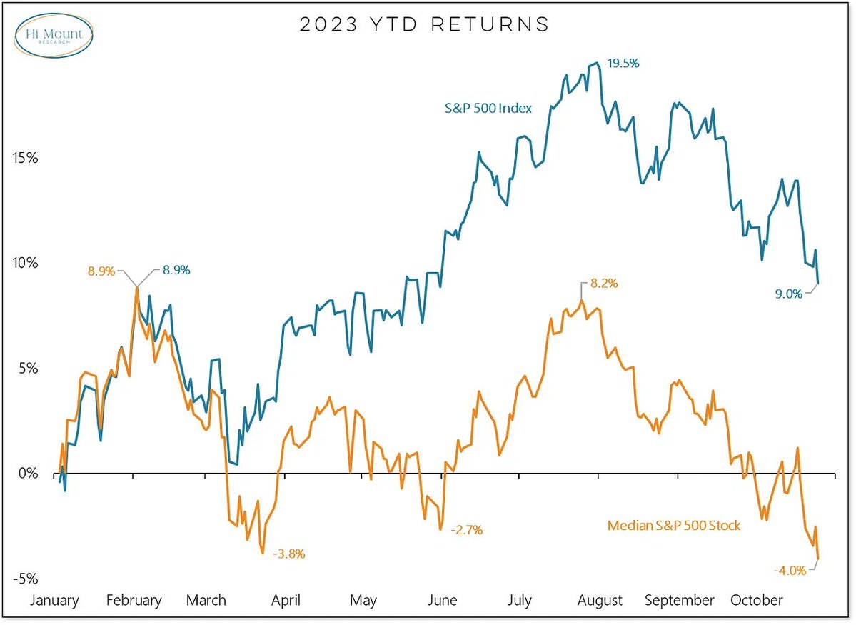 Beckham: We all know the “market of stocks” is falling way short of the S&P this year, and it really kicked in during the March banking crisis