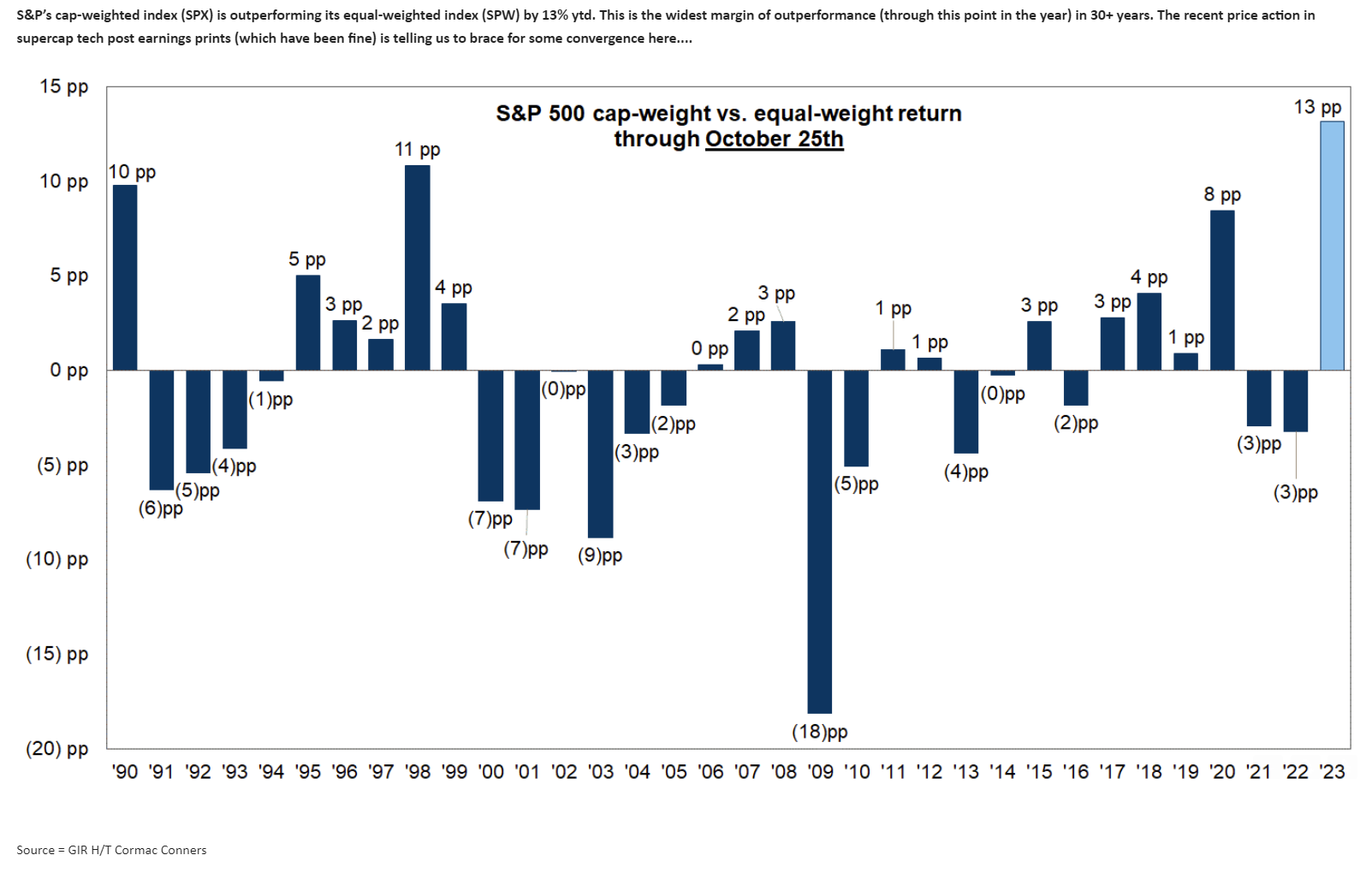 Mark: triggering a historic (double-digit) performance difference between cap-weighted S&P 500 and pretty much any other weighting scheme