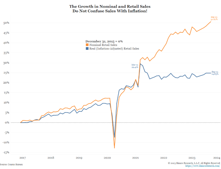 Joseph: and while GDP does calculate real data not nominal, it does seem like much of the retail “growth” is just rising prices not more units