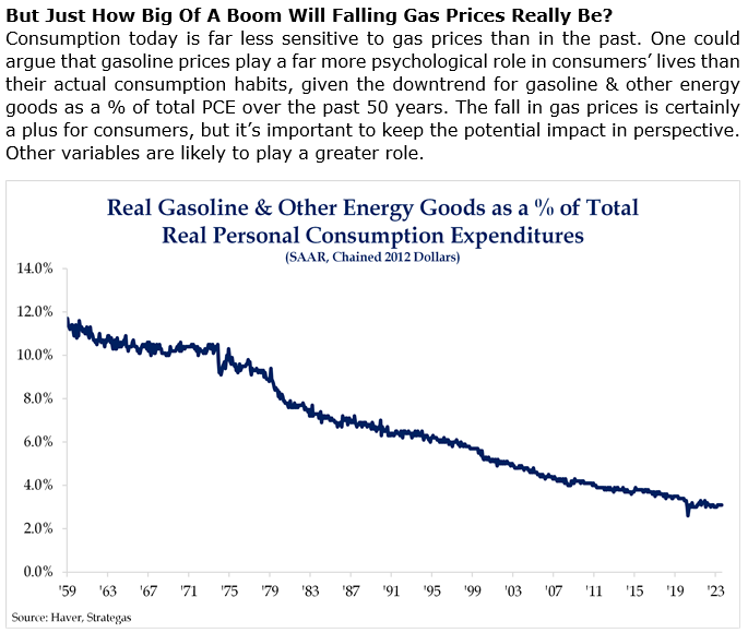 Brad: The price of gas gets all of the Main Street chatter, but its impact has consistently fallen over time