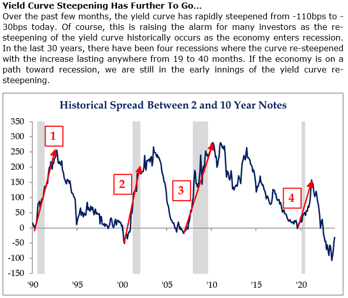 Brad: The inverted yield curve has been historic but the past few weeks have seen a shrink in its extremeness