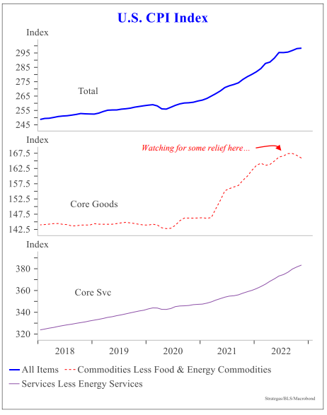 While continued pressures in the (sticky) labor-intensive components are still a concern, they were more than offset by deflation in the goods economy (remember there were some adjustments to the calculation at the beginning of the year driving up the importance of goods post – COVID). This will be the dynamic to watch moving forward.