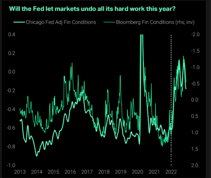 If the Fed does slow the pace of rate increases, it is important they signal that this is not the end of the tightening cycle and there is still more work to do. If they fail to communicate that a slowdown is not a pivot, we fear the Fed risks undoing all the hard work it has done this year tightening policy. The Fed can’t have both tightening of policy and loosening of financial conditions — something’s gotta give!