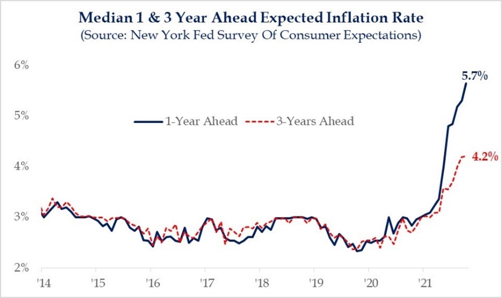 Inflation has been a major headline the last 18 months as market participants digested the unprecedented government response to the pandemic (i.e., monetary and fiscal policy). Since early 2021, the Fed has championed that inflation would be “transitory” although following the higher-than-expected October CPI print, the narrative has begun to shift. Chairman Powell amended his definition of “transitory” and changed his tune to say that inflation is “probably transitory”. Thus far inflation has proven not to be transitory and elevated (and further rising) prices have quickly become a big problem for politicians and the Fed.