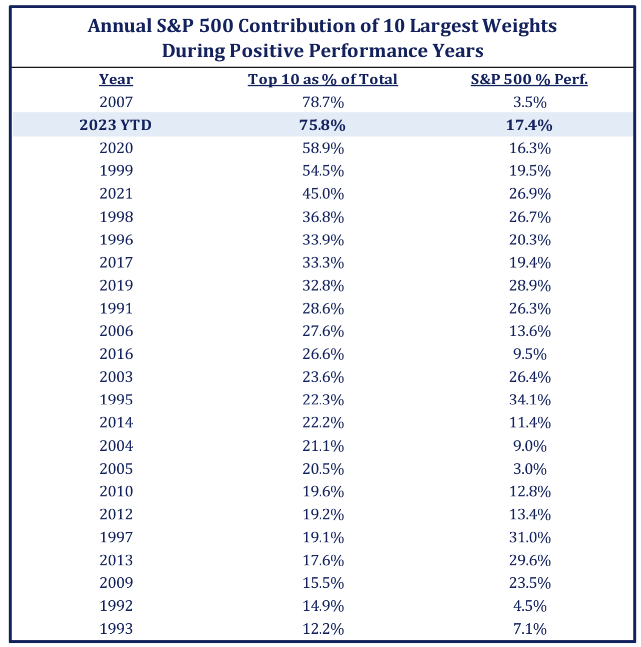 Dave: which has manifested itself in a tiny group of growth stocks contributing nearly the entire YTD return
