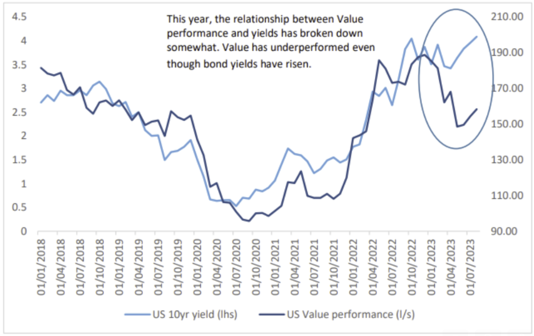 Dave: The big anomaly this year has been growth stocks outperforming in the face of higher real yields
