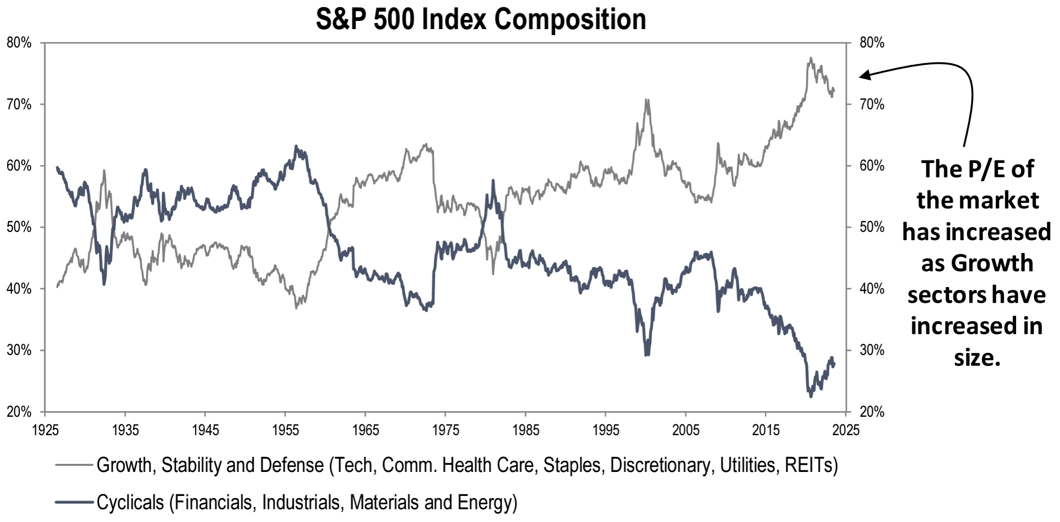 Dave: which has lifted valuations as cap-weighted indexes tilt in the direction of higher-growth industries