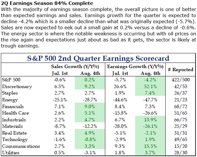Brad: Most Q2 earnings are out, and it’s generally been better-than-expected