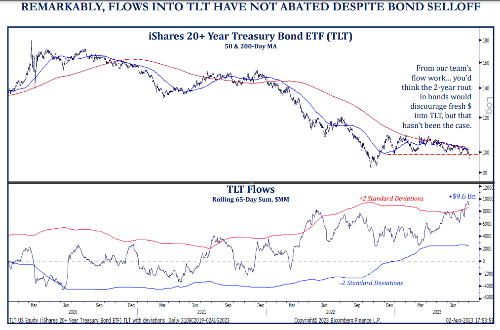 John Luke: Ironically, money continues to flow into the big T-bond ETF despite the poor performance