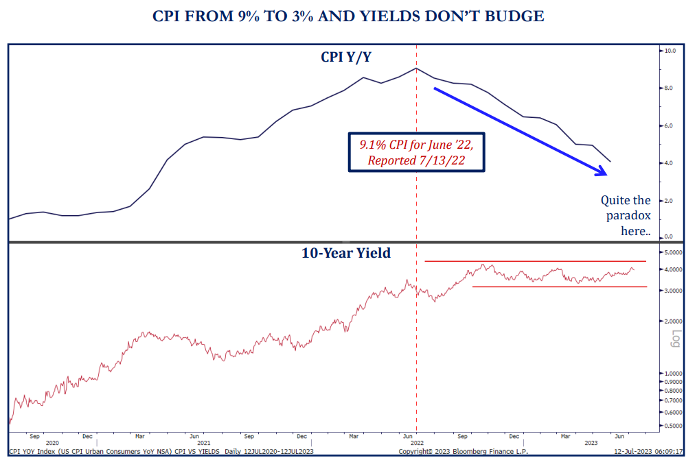John Luke: The closely watched 10-yr Treasury yield hasn’t been very responsive to the recent fall in headline inflation