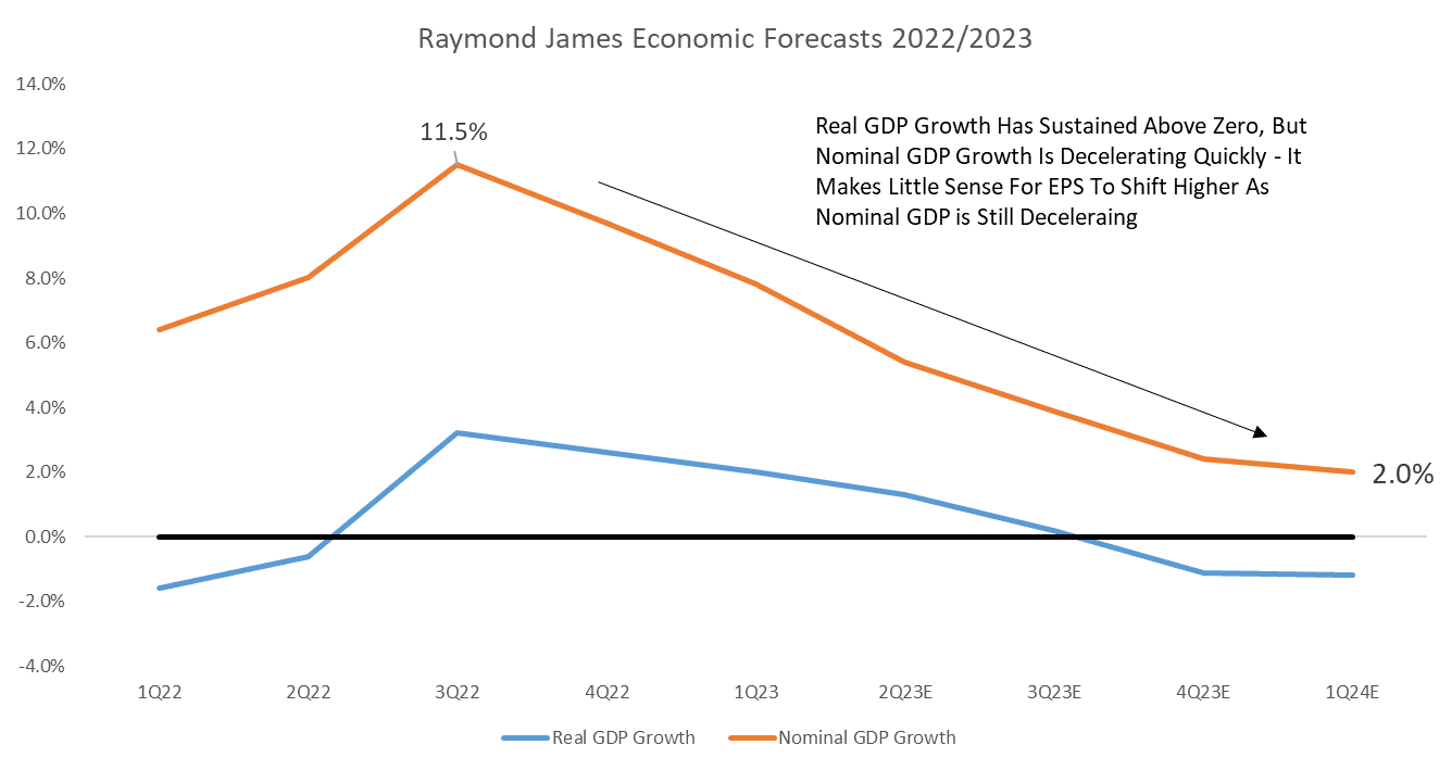 Dave: It will be hard to get actual earnings growth with Nominal GDP fading from recent growth rates