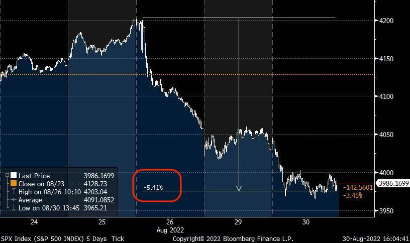 SPX down over -5% in the past 3 days since Jackson Hole.