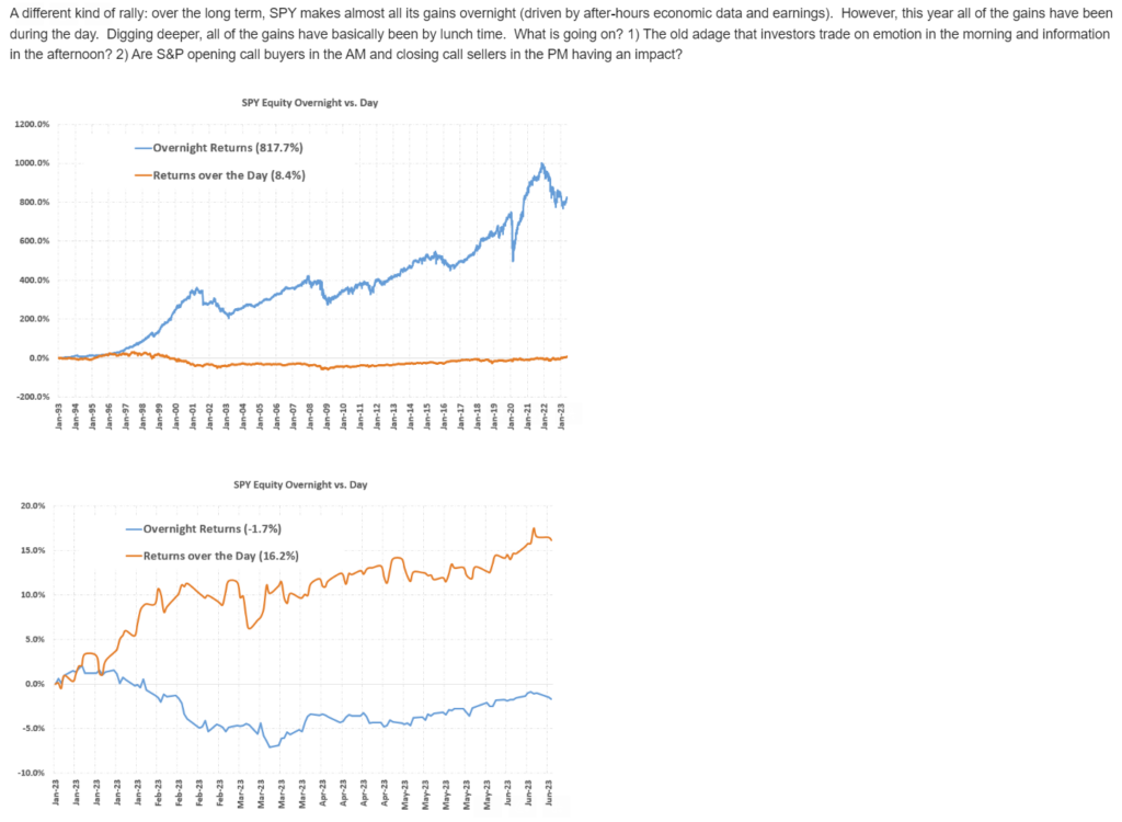 Mark: This year’s market has been different from recent years, with most of the gains occurring during trading hours not overnight