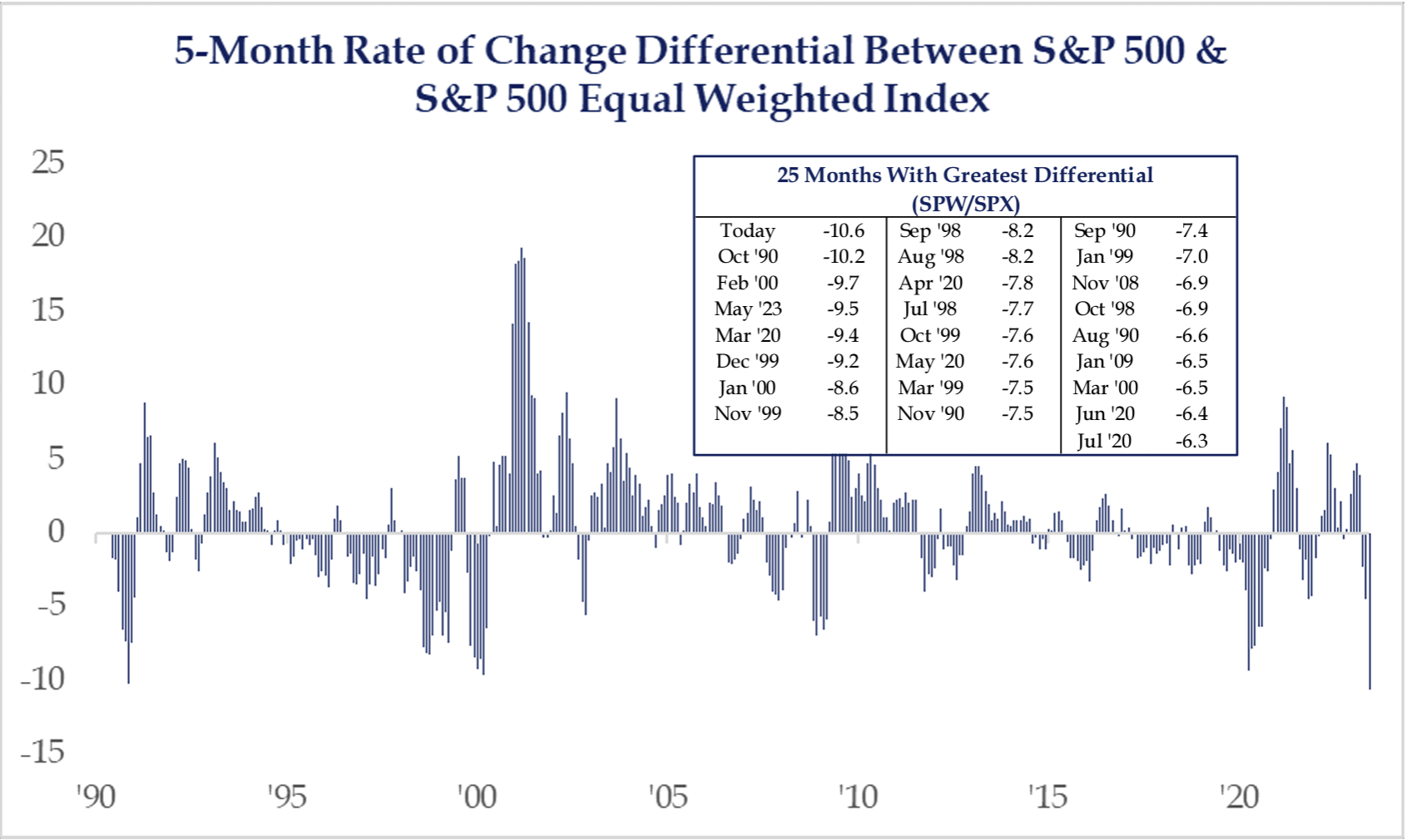 Dave: As everyone knows, a tiny group of megacap tech carried stocks on their back into early June
