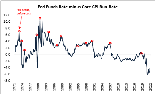 The key question remains: is the stance of Fed policy sufficiently restrictive today to anchor long-run inflation expectations? It’s tough to believe policy is overly tight if we are still looking at low/negative real interest rates.