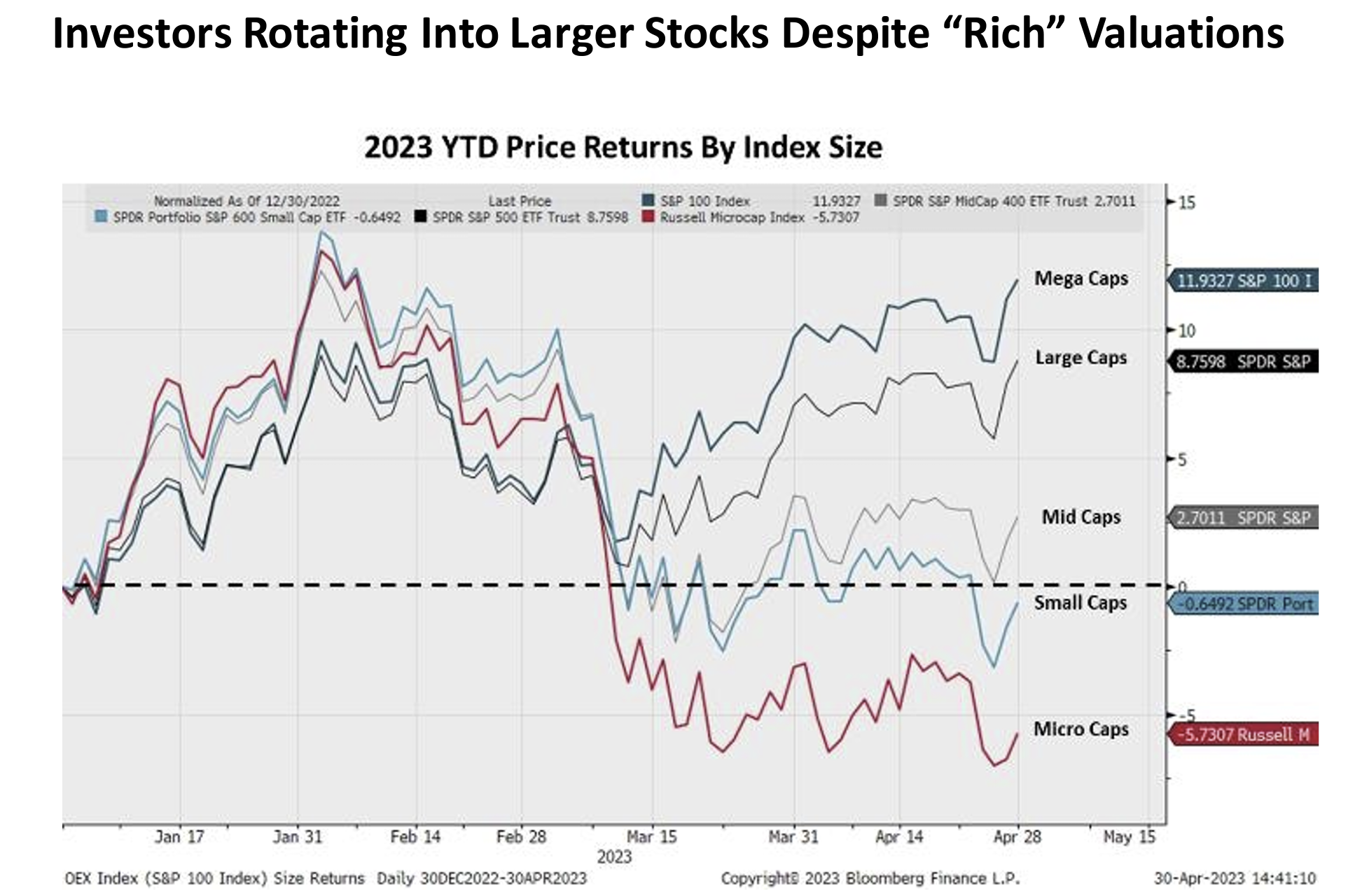 Dave: We’ve seen significant performance differences based on company size, with megacaps dominating and microcaps floundering