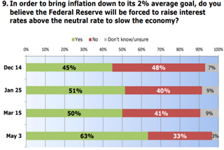 * Fed Hikes 50bps and Starts QT, albeit more Slowly than Expected. The Fed hiked rates 50 bps (instead of 75) and basically ruled out 75 bps increases going forward. In our opinion, the Fed eased policy yesterday. If you are a central bank that is behind the curve, you need to do MORE than the market expects, not less. One year forward fed funds futures yields dropped from 3.30% to 3.17%. Waiting this long to normalize policy increases the odds that the Fed will ultimately have to engineer a more significant overshoot of the neutral rate (3%+ Fed Funds Rate).