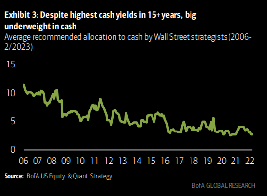John Luke: while Wall Street strategists remain inexplicably low in their suggested allocations to cash