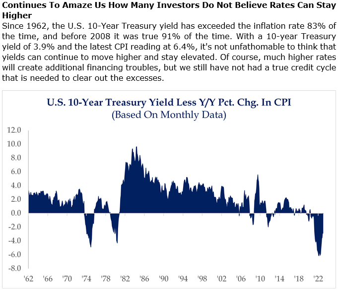 Brad: Real 10 year yields remain historically low relative to CPI