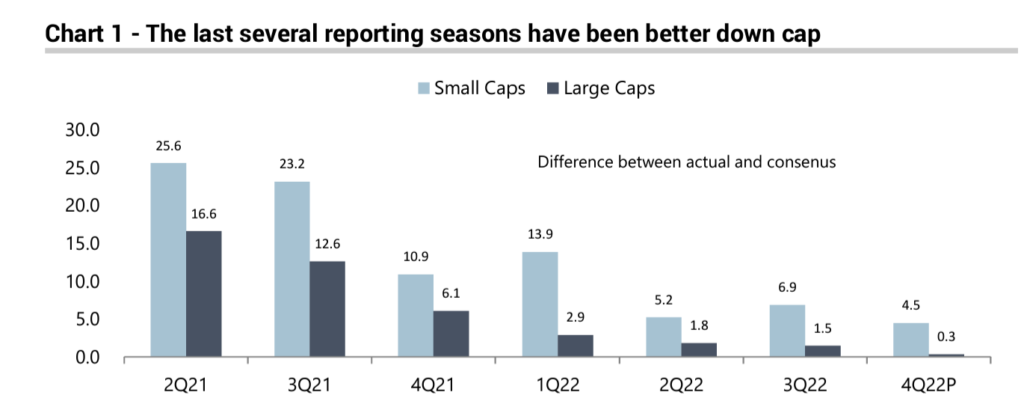 Dave: Small cap earnings have been faring much better than large cap, relative to expectations