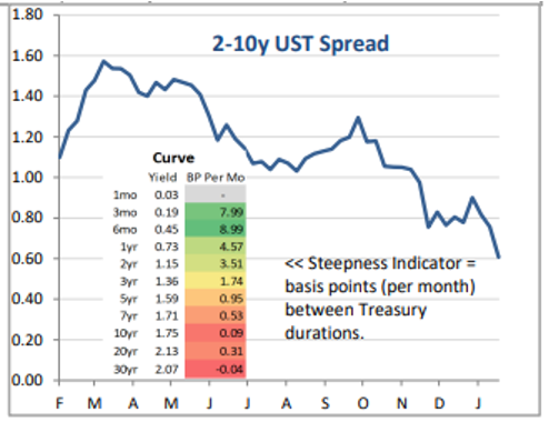 * Current Rates & the Curve: The front end of the curve continues to feel pressure as economists are now projecting five to seven rate hikes in 2022, and the forwards market forecasts just under five rate hikes by year-end. However, longer-dated interest rates are unwavering as the 10-year US Treasury appears unable to breach the 1.88% support and is now headed towards the 1.70% resistance level. The curve has flattened to 59 bps of spread between 2s and 10s for the flattest curve since last fall.