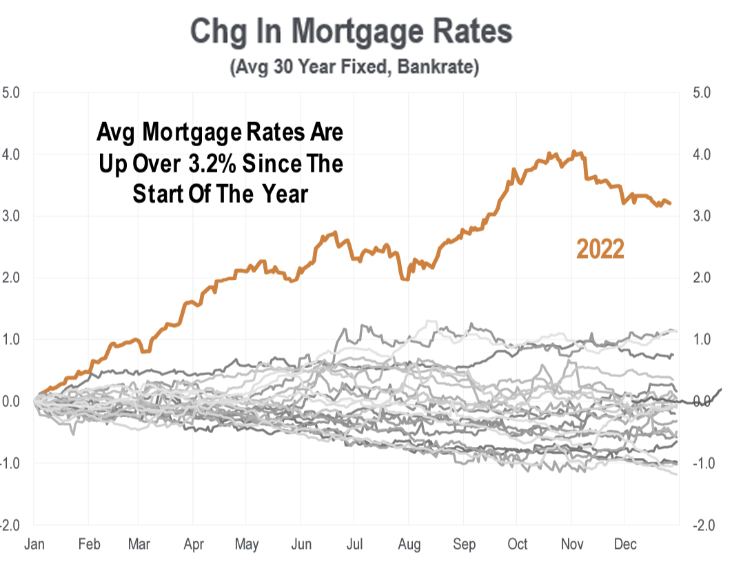 Dave: No shortage of big market stories this year, but among the most widely felt may be the unprecedented rise in mortgage rates