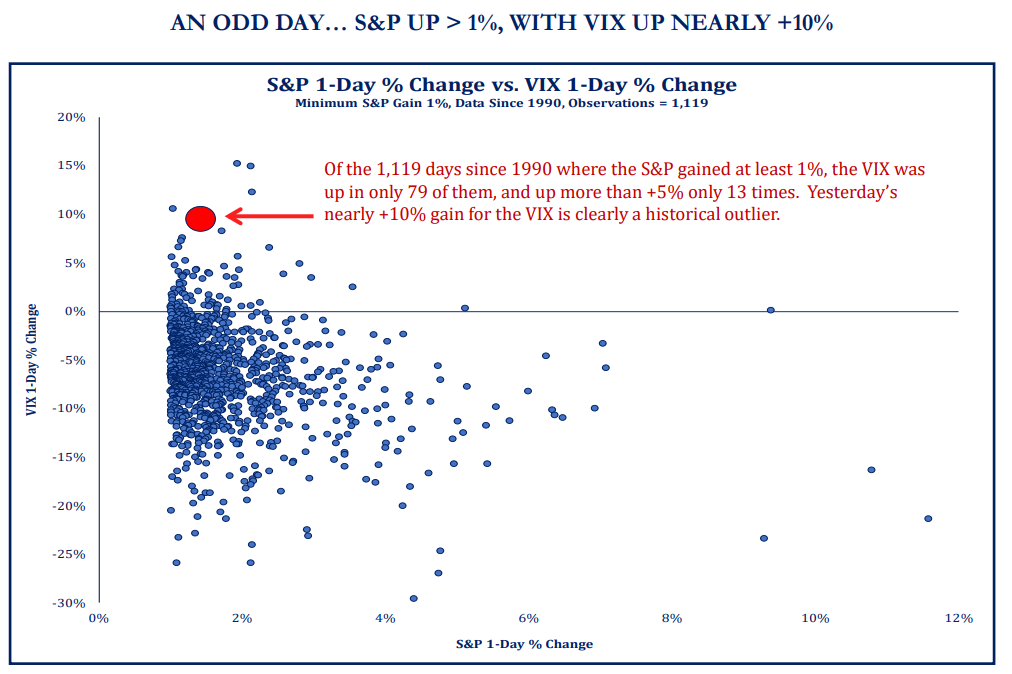 JL: Monday was a really unusual day, and it turned out the VIX was more right than stocks