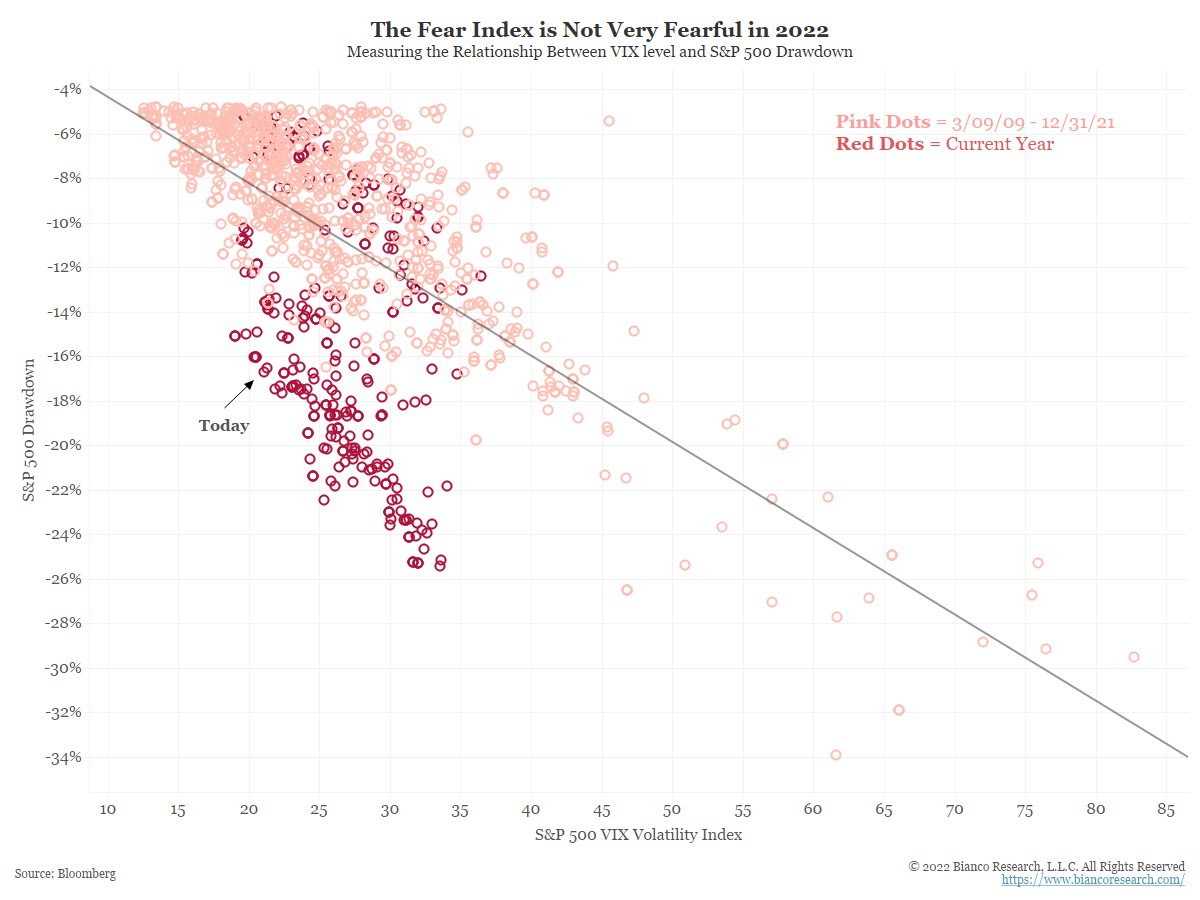 JL: but much more an uncertainty grind than a market of fear, with VIX restrained vs. prior drawdowns