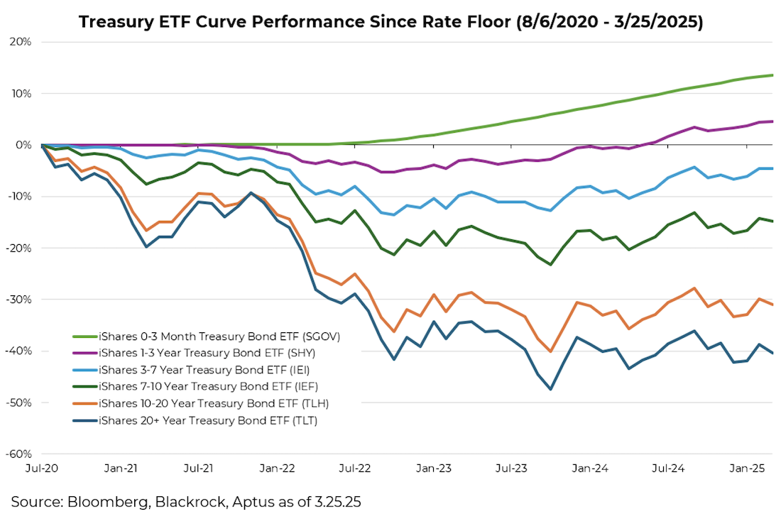 Fixed-income investors have faced a brutal reality since bond rates bottomed in August 2020. Long-dated Treasuries (20+ years) remain down 40% from their peaks, requiring nearly nine years of coupon payments just to break even. While short-duration bond investors have managed nominal gains, even those returns disappear after inflation and taxes.