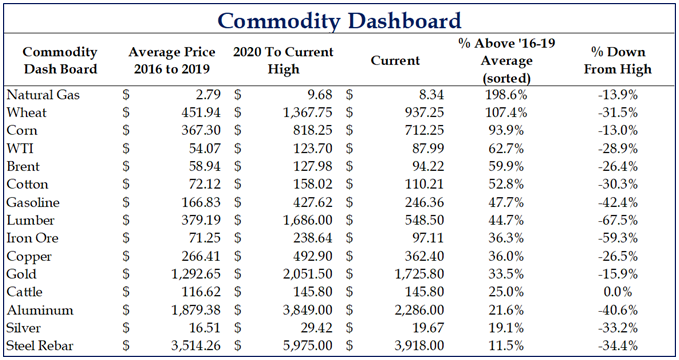 Brad: but despite commodity prices falling from highs, they’re still quite elevated vs. recent years