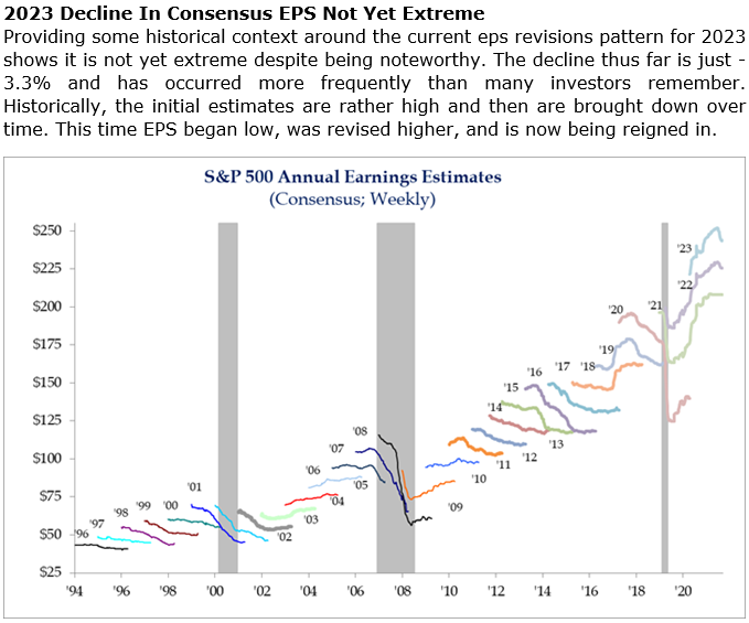 Brad: Consensus earnings estimates are following their usual pattern of rising early and fading late
