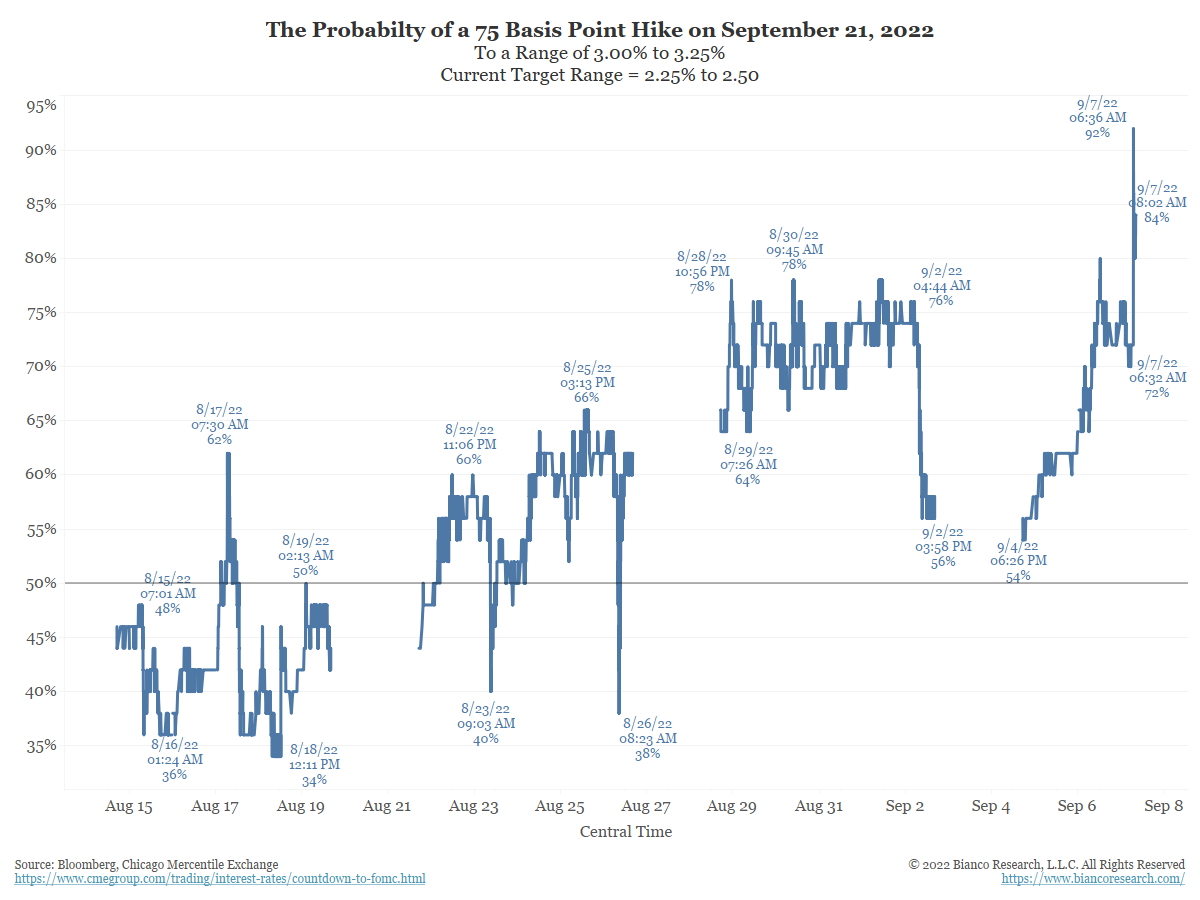 John Luke: Markets are now firmly in the “75 bps hike” camp for the Sept 21 FOMC Meeting