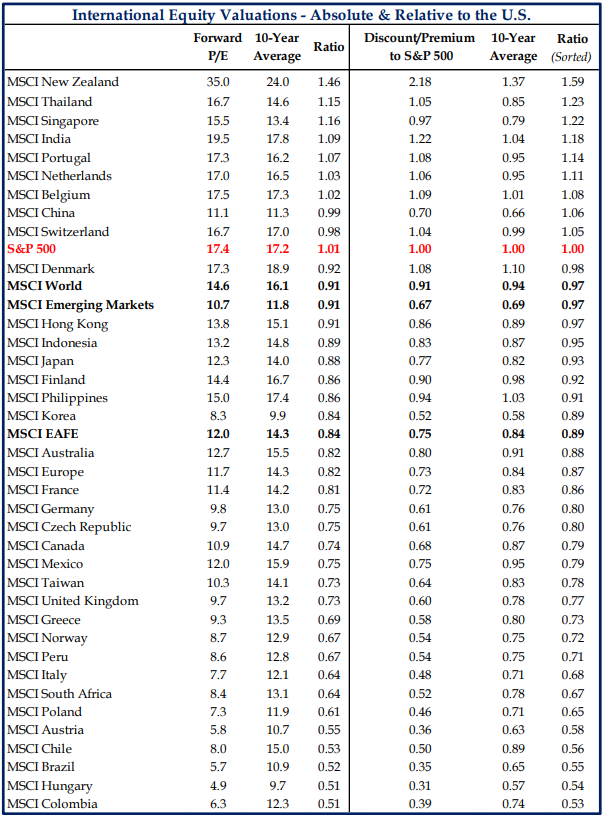 Brad: A number of international markets continue to trade at substantial discounts to the US
