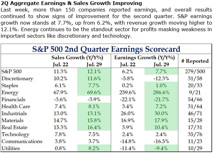 Brad: Earnings continue to be solid for S&P companies, sales even stronger