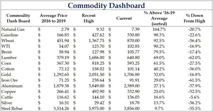 Brad: Commodity prices are in a large retracement but still up substantially vs. recent years