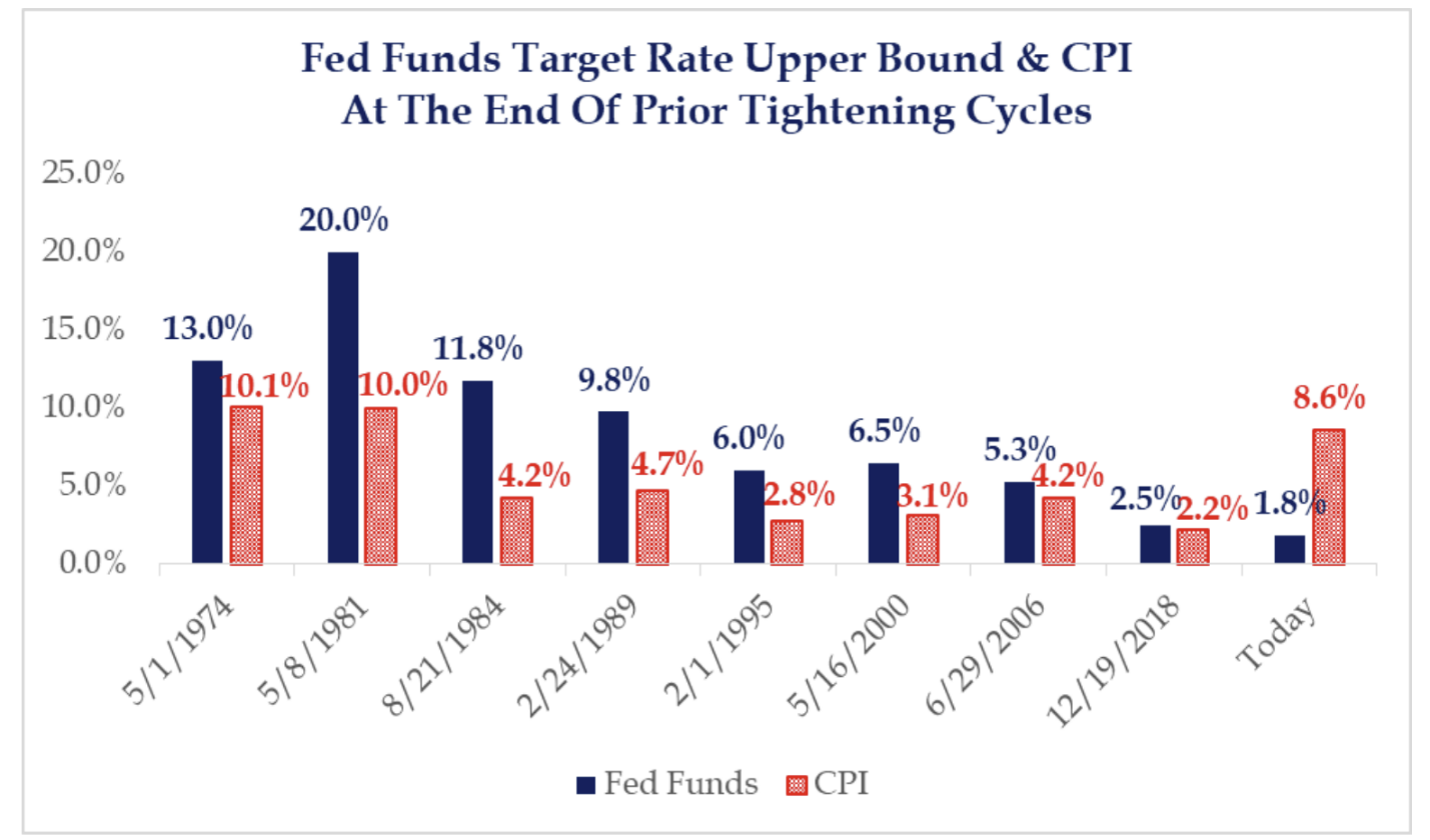 Dave: there hasn’t been a single instance in 50 years of Fed Funds < CPI at the end of a tightening cycle