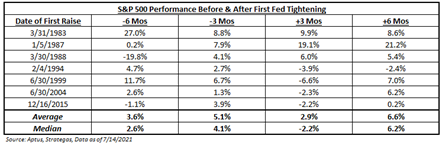 Focusing on the equity-side of the market, it should come as no surprise that stocks would rally into the beginning of a Fed tightening cycle – stocks are still being supported by a Fed put. And for those of us that remember the most recent taper-tantrum, it should be no surprise that the first three months after the Fed tightening begins, there tends to be a bit more volatility and uncertainty amongst market participants.