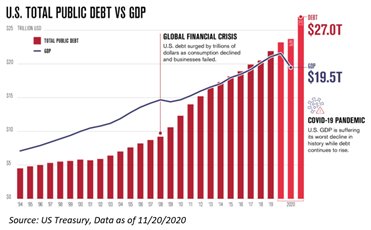 Last year, about this time, the topic of Modern Monetary Theory (MMT) was being widely discussed by the media, and largely disavowed by mainstream economists and government officials, including Treasury Secretary Mnuchin and Fed Chair Powell. Yet, in March, we will basically celebrate the one-year anniversary of the quasi-stealth adoption of Modern Monetary Theory, and we believe it is only going to get bigger in the months and quarters ahead, and the consequences for assets could be substantial over the longer term.