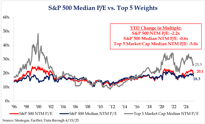 Brad: As we head into earnings season, the correction in prices means lower valuations especially for the formerly popular Mag 7 names