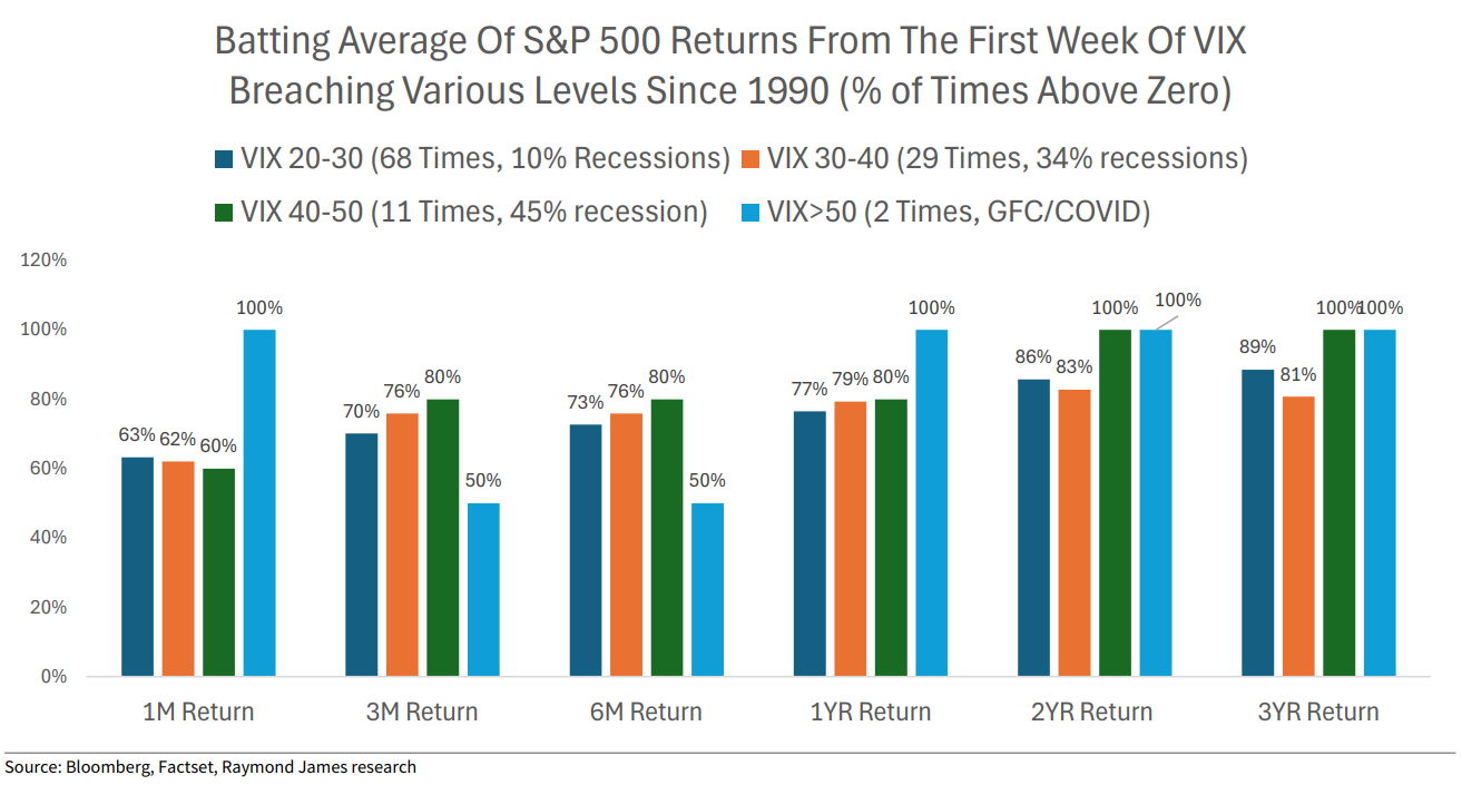 Brad: High VIX has coincided with near-term weakness, but the benefit of improving chances for long-term upside once cleared