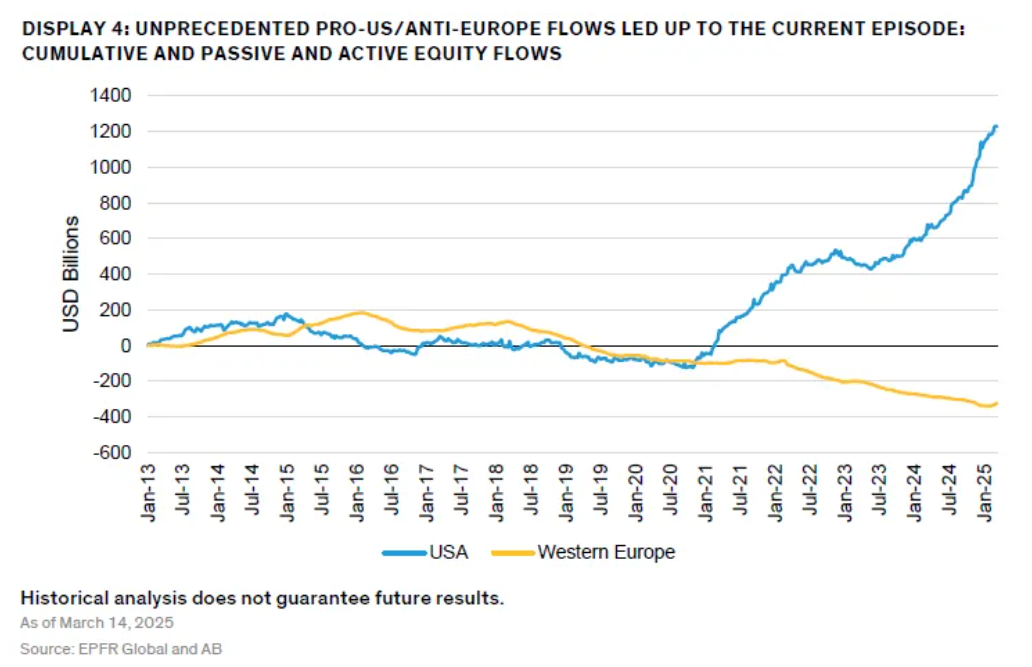 Joseph: It’s no secret that US stocks have dominated European stocks for years, and investor flows since COVID have only accelerated the split