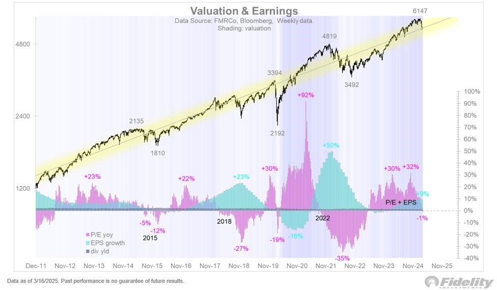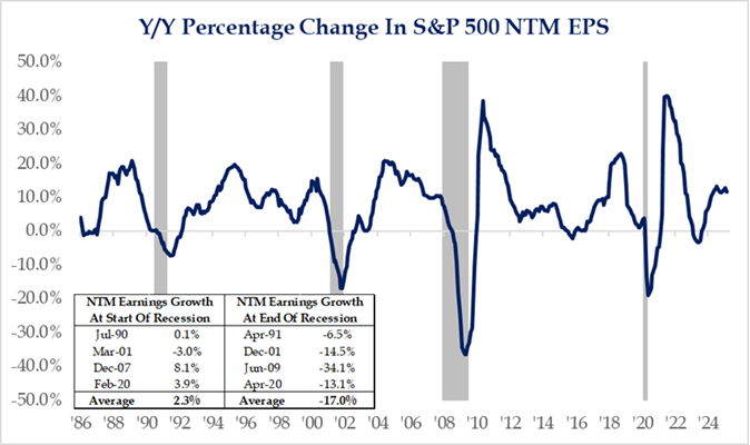 Brad: “Correction without a recession” seems to be the evidence-based call, as past recessions had already seen earnings deteriorate while today we still have solid earnings growth
