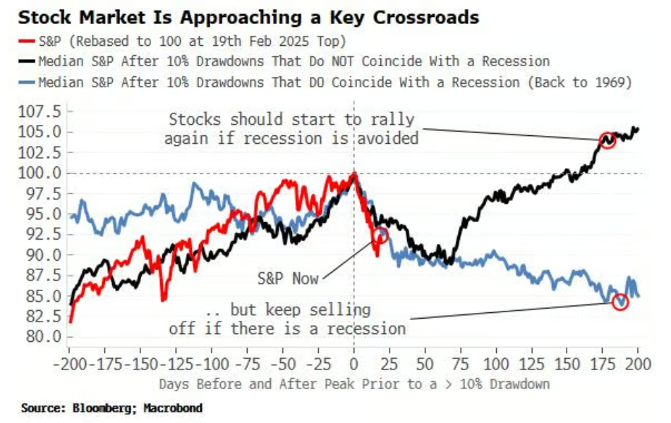 Beckham: and the direction of stocks after 10% corrections looks heavily tied to whether or not the economy goes into a recession