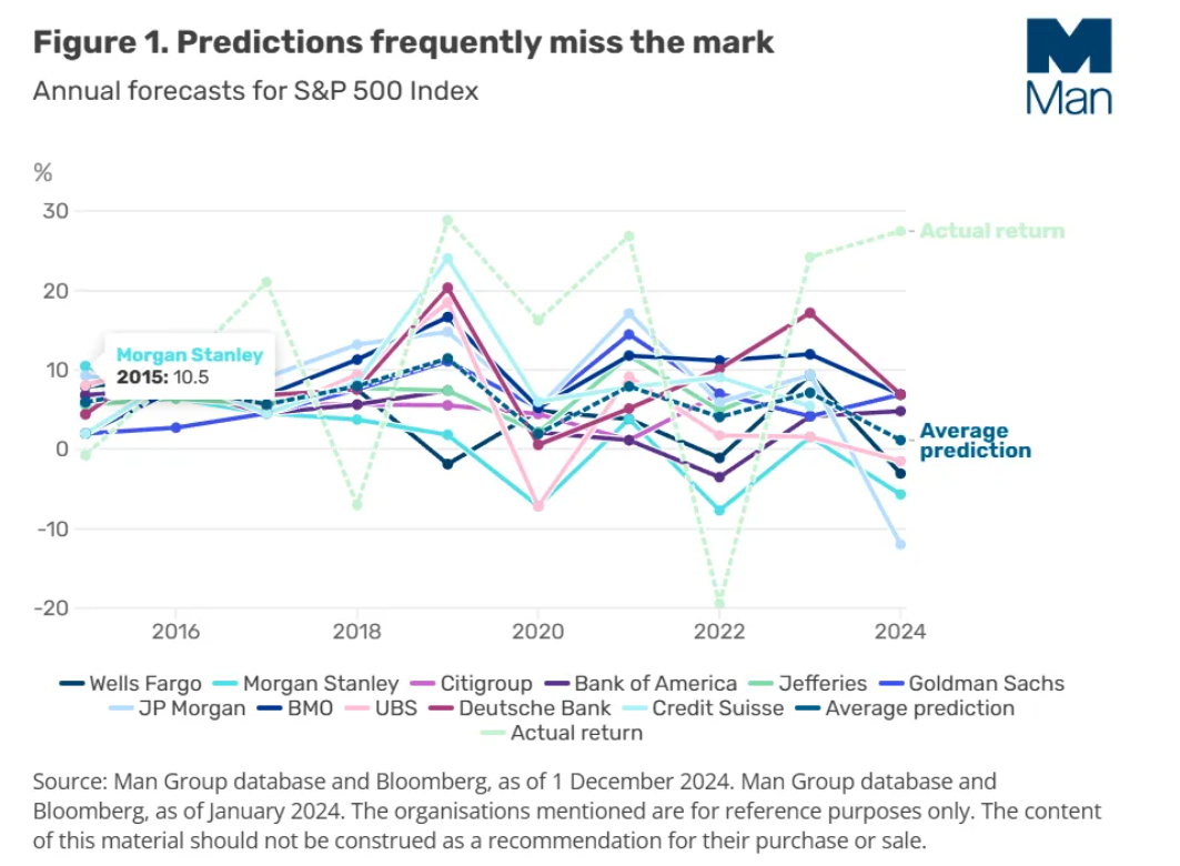 JD: Strategists generally hug the middle and skip the tails when forecasting year-ahead market levels