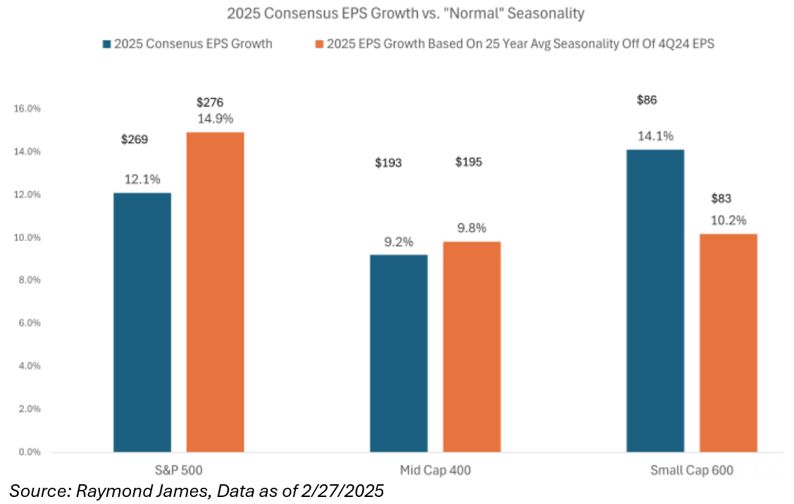 - Secondly, the S&P 493 and S&P 400 had positive YoY growth, and although Small Cap 600 was still slightly negative, it’s getting materially better, and the breadth of YoY EPS growth should continue to improve through 2025.