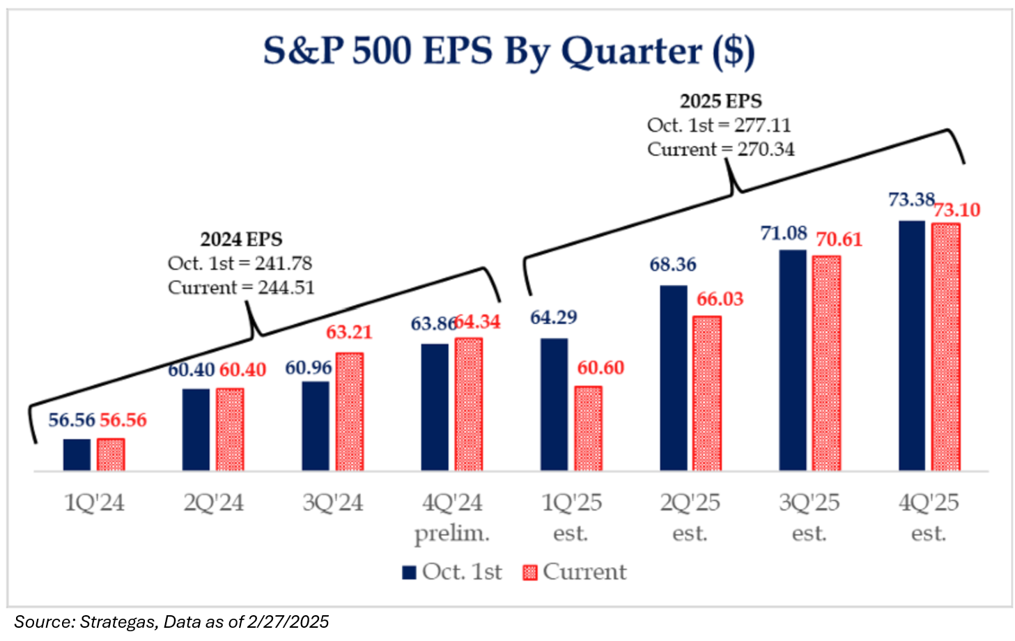 After listening to a slew of earnings calls, it seems that tariffs are the key downside risk to S&P 500 EPS right now. For a point of reference, Goldman Sachs estimates that for every 5% increase in the US tariff rate, they would reduce the 2025 S&P 500 EPS estimate by roughly 1-2%. Let’s take that in context; the S&P 500 has been outkicking its weight class in EPS growth over the past few years and is expected to grow earnings by 14% – 15% in 2025.