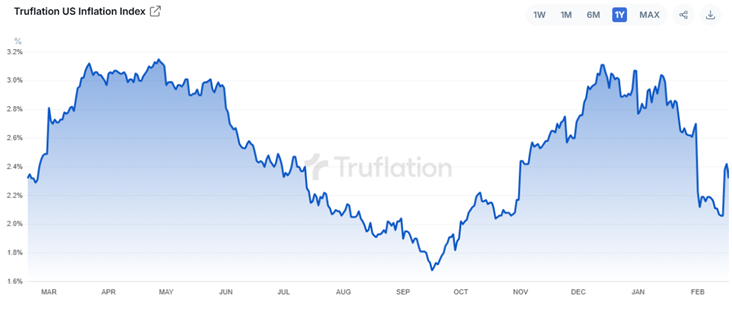 Truflation aims to offer a more comprehensive, timely, and transparent measure of inflation that can provide valuable insights and complement government indexes, given its real-time perspective on price changes. That being said, the index (as is the CPI index) is still running above levels that provide a green flag to keep cutting rates.